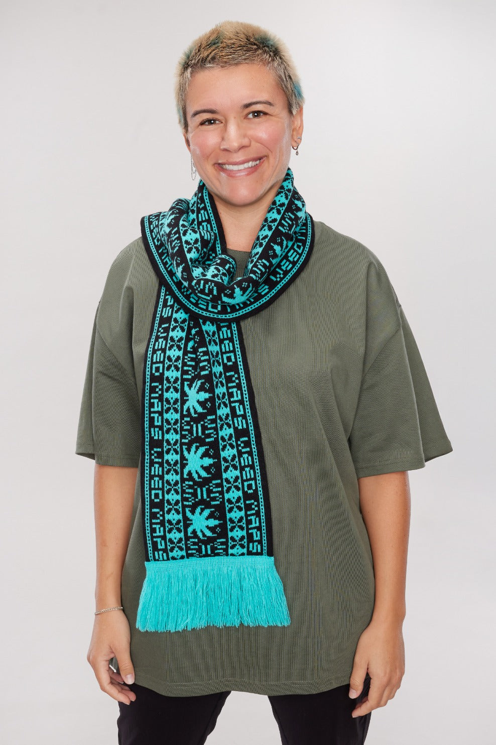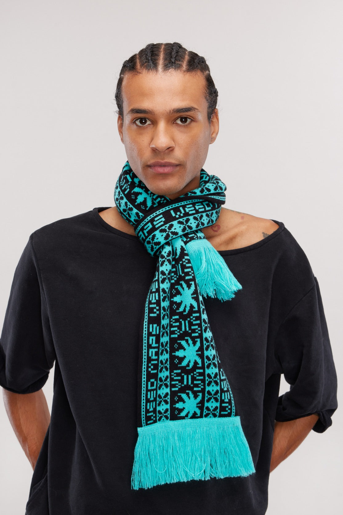 Chill out wrapped in the Frost Scarf, featuring a detailed knit pattern and a cool fringe edge that adds effortless style. It's perfect for keeping warm while you vibe low-key and laid-back all season long.