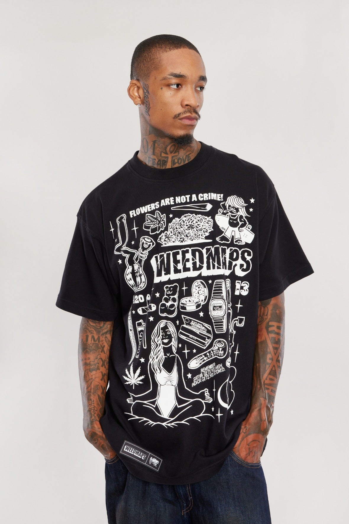 Rock this tee featuring a Mike Giant original flash sheet design. This tattoo-inspired graphic has every stoney design packed onto one tee. Comfortable enough to live in, bold enough to make a statement.